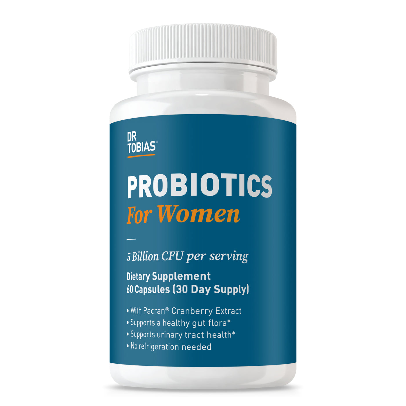 Dr. Tobias Probiotics for Women includes 5 Billion CFU's per serving (2 Capsules). Delivered in our targeted release capsule, which ensures the spore-forming probiotic strains are protected from the stomach's acid and are released into the intestines where they can get to work. Daily probiotics and prebiotics for women help support gut health, immune function and can offer relief from digestive discomfort. This probiotic supplement is shelf-stable and does not require refrigeration.